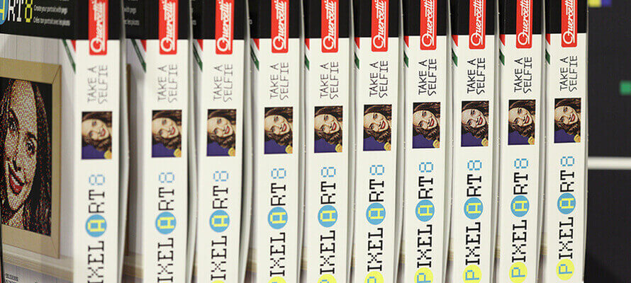 Per il progetto sviluppato da Creostudios per Quercetti, Ciemme ha realizzato due elementi: un adesivo stampato su uno speciale supporto attacca & stacca, che sfrutta le possibilità creative del dato variabile per personalizzare la confezione, e astucci in cartoncino teso automontanti senza punti colla che contengono chiodini aggiuntivi rispetto alle confezioni standard di Pixel Art 8 Take a Selfie. La stampa è realizzata con la nuova tecnologia ad alta produttività Konica Minolta AccurioPress C12000, una delle due ammiraglie di Konica Minolta nel segmento colore Production Heavy con tecnologia toner da 120 ppm, grammature fino a 450 gsm e fronte retro automatico fino a 900mm. Dotata di controllo automatico del colore e del registro è l’Ideale per gli stampatori che vogliono aumentare la produttività attraverso un incremento di efficienza e velocità.