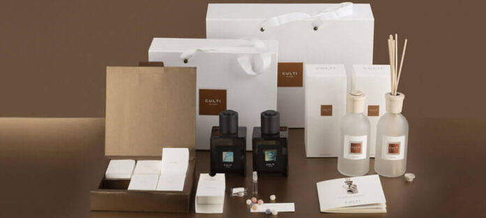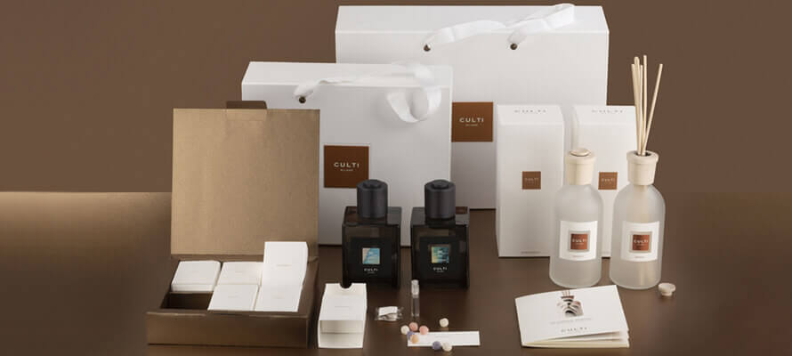 Sinestesia. I sensi si fondono e perdono i loro confini per creare una nuova realtà, un nuovo modo di percepire. Questo è partenza e arrivo di un’esperienza su cui focalizzare i pilastri portanti del brand: eleganza, elezione, unicità. Dal concept creativo alla realizzazione finale, l’obiettivo è sempre stato chiaro: regalare una nuova dimensione all’esperienza d’acquisto vissuta all’interno dei punti vendita CULTI MILANO e lasciare un ricordo unico e indelebile, da portare con sé nella memoria. Come altro riuscirci, se non andando a risvegliare tutti i cinque sensi, generatori stessi di ricordi indimenticabili? Da qui la creazione di un vera e propria esplosione di sinestesie che prende forma nella Senses Box CULTI, percorso sensoriale in grado di sviluppare nuove dimensioni percettive. L’esperienza sinestetica si concretizza nella scelta di carte di struttura successivamente lavorate in debossing, in grado di far emergere la loro espressività grazie alle texture studiate e personalizzate per ogni famiglia olfattiva e alla fragranza in esse impregnata.