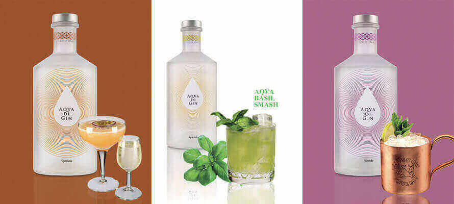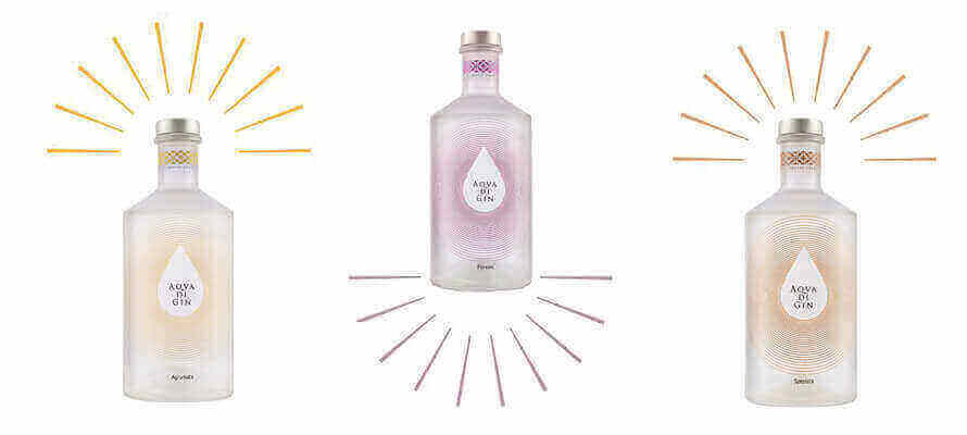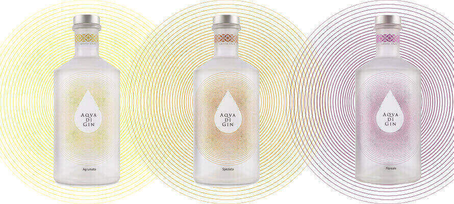 La collection è ispirata al mondo dei profumi e alla piramide olfattiva usata per percepire le sensazioni che ogni fragranza suscita. Le “AQVA DI GIN” hanno corpi aromatici molto ricercati nei quali spiccano molte botaniche tra cui il Ginepro rosso, Bergamotto, Mandarino, Arancia Amara, Limone Sfusato di Amalfi, Foglie e Fiori di Agrumi, Fiori di Sambuco, Lavanda, Boccioli di Rosa, Fiordaliso, Galanga, Pepe Rosa, Cardamomo e Fava Tonka.