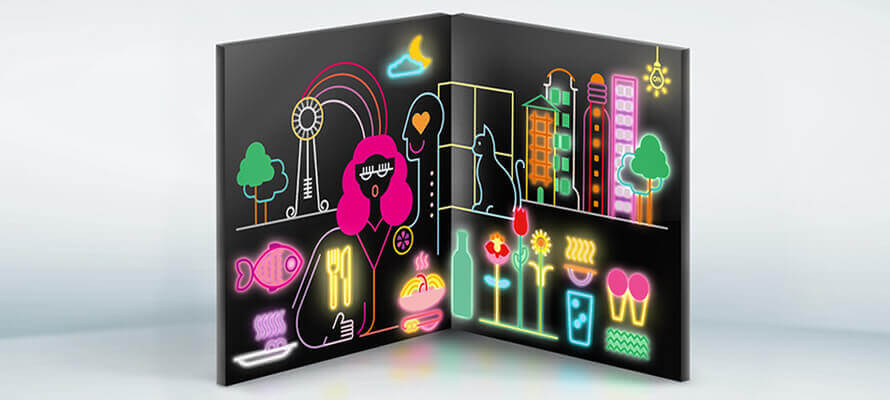 Cinque libretti, cinque occasioni di sorriso. Sono realizzati da Retail Pak e tutti diversi: per la loro specificità sono stati lavorati come pezzi unici e utilizzando il taglio laser per creare il sorprendente effetto pop-up. La prima occasione di sorriso riguarda una cena: grazie alla presenza di led gli ingredienti per una cena perfetta, resa possibile da un buono acquisto, si illuminano all’apertura del libretto. La seconda occasione è un viaggio, reso ancora più piacevole dalla stampa profumata dei fiori in città. C’è poi un’occasione di shopping con un figurino da vestire di abiti e accessori attacca e stacca all’interno di un negozio dal sapore vintage; un’occasione di gioco con una giostra pop-up e un buono dedicato espressamente al Natale con un albero addobbato che diventa tridimensionale. Completa il kit un sesto libretto istituzionale che illustra i servizi e la visione di Edenred.