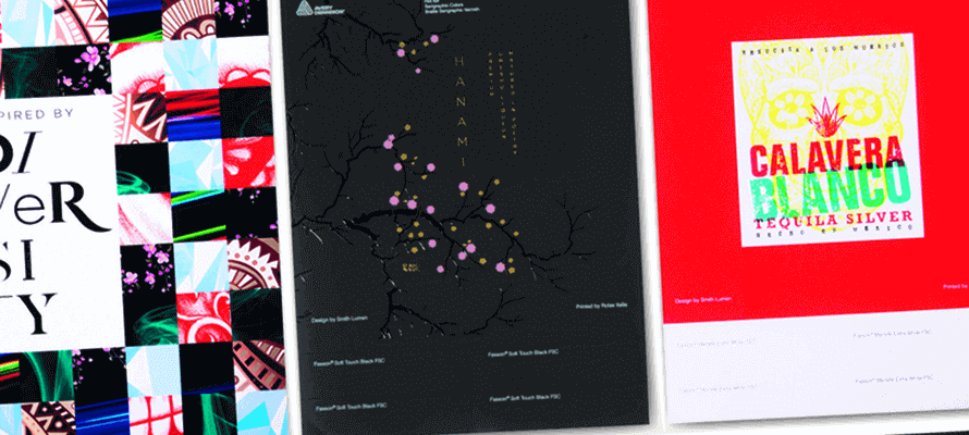 Carte FASSON®: Cotton Touch Craft FSC, Cotton Black FSC, Soft Touch White FSC, Soft Touch Black FSC, Martele Extra White FSC, Martele Black FSC. Sono state usate molteplici tecniche di stampa tra cui: Lamine a caldo, colori serigrafici e fluo, colori offset, vernice lucida braille e con effetto sabbia, emboss e deboss.