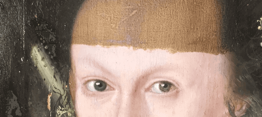 Il 6 novembre 2017 il commerciante e storico d'arte inglese Philip Mould pubblica su Twitter un video straordinario. Si tratta del restauro di un dipinto del 1618 raffigurante una nobildonna vestita di rosso con un raffinato pizzo di Bruges e preziosi orecchini di rubini.