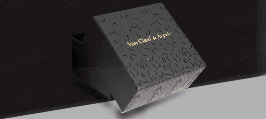 Quando lucido e opaco non bastano più, quando non ci sono dettagli da esaltare, alti spessori da raggiungere, o solo si cercano risultati estremamente raffinati, si può ricorrere a finiture soft-touch che rendono la superficie estremamente interessanti al tocco, dando la sensazione di morbidezza, di gommosità. Nike per esempio l’ha scelta per il packaging della sua linea di abbigliamento tecnico Therma per comunicare la delicatezza dei materiali. O ancora Van Cleef & Arpels per box e shopper stampati in nero rispettivamente su cartoncino da 150 e 1200 gr, verniciati UV soft-touch e impressi a caldo. Ma come detto sopra, la vernice può essere usata proprio come un colore miscelata ad esempio con i pigmenti a base di mica Iriodin (brevetto della Merck) a bassa percentuale per ottenere effetti cangianti, con riflessi che passano dal blu al viola al giallo oro, e addirittura perlescenti, ottenuti sempre con pigmenti Iriodin. Per questo tipo di verniciatura si possono usare sia le vernici grasse che quelle acriliche, anche se queste in particolare hanno una resa maggiore, per via della possibilità di spalmare sulla carta, durante la stampa, una quantità maggiore di vernice rispetto a quanto possibile con le grasse, ottenendo maggior lucentezza e profondità.