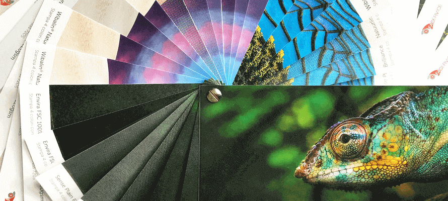 Fontana Grafica seleziona due classici nella gamma delle tele da legatoria: Brilliance e Natuurlinnen. La prima liscia in tessuto rayon, bianca e molto luminosa, la seconda più ruvida al tatto e dall’aspetto naturale. Sense Plain, un floccato, certificato FSC, vellutato e morbidissimo al tatto. Infine una serie di carte e cartoncini tra cui Wibalin (in due grammature, 120 e 320gsm), Environment Birch 240gsm, una carta riciclata con il 30% di PCW (post consumer waste) leggermente avoriata ed Envira una carta 100% PCW molto luminosa e caratterizzata da un grado di bianco al 95% (nelle grammature 220 e 450gsm).