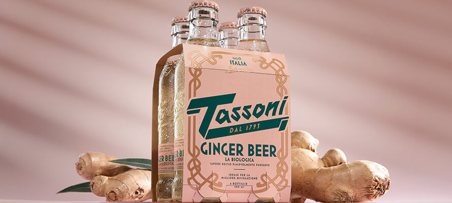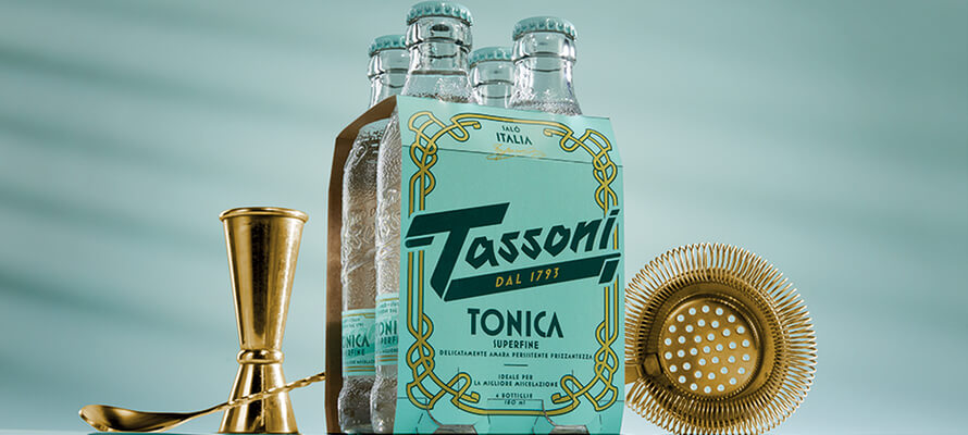 Il restyling parte dalla famiglia Cedrata, destinata a una clientela sofisticata, alla ricerca dell’essenza della tradizione italiana, ma abbraccia l’intera collezione, che si arricchisce di prodotti concepiti per la mixology di alta gamma. La storica bottiglietta a buccia di cedro è resa ancora più iconica con un rilievo ben visibile del logo – evoluzione di una storica versione presente nell’Heritage di marca – e della data di fondazione, che sottolinea il legame con il proprio territorio, il Lago di Garda. Un lavoro ispirato dalla materia del frutto madre, con le sue naturali imperfezioni e la sua inaspettata sensorialità: fuori una scorza dura e spessa, dentro un cuore dolce e sorprendente. Un nuovo tappo riprende nei colori la confezione, resa più elegante con richiami allo stile floreale Liberty, e le nuove etichette, che passano dalla plastica alla carta, coerentemente con l’impegno verso la sostenibilità dell’azienda. Alla gamma dei sodati si unisce un Gin di nuova concezione, con un packaging iconico che recupera la medesima texture a buccia di cedro, riproposta in una forma che richiama il patrimonio storico della marca, arricchita da un tappo disegnato ad hoc per creare una nuova icona di questa categoria. Parte del progetto anche il sofisticato design del nuovo bicchiere di Tassoni, una coppa di champagne ispirata da antiche illustrazioni ritrovate nell’archivio storico dell’azienda, che ritraevano momenti di consumo conviviale della cedrata.