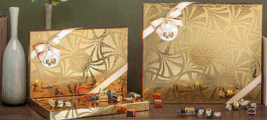 Balance, not luxury at all costs, distinguishes Venchi packaging, which reinvents itself every year. For example, the colours change for the Easter and Christmas collections. However, the packaging also remains faithful to some key elements: for example, brown as the brand corporate colour, and gold as the distinctive colour for the classic Gianduiotto. Enhancements, embossing and special papers which produce unusual tactile effects are used for premium lines, which are distributed not only in flagship stores, but also in multi-brand channels such as patisseries, wine shops, bars and fine food shops.