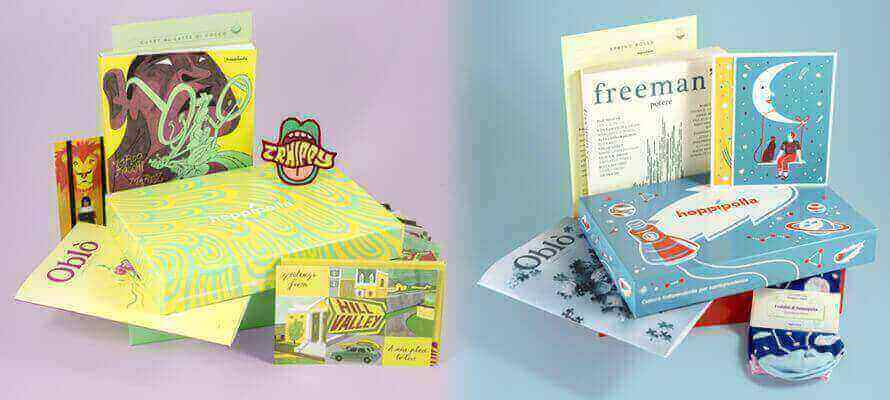 Founded in November 2016 by Simona Basilavecchia, Paola Tartaglino, Francesco Rellini and Nicola Minerva, Hoppípolla is a limited edition box entirely made in Italy and sent as a subscription service. The idea was born from the desire to create a box dedicated to independent culture in design, publishing, and illustriation, creative fields full of talent which often struggles to reach its potential public.