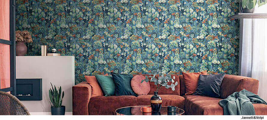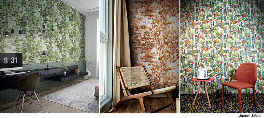 I motivi floreali e botanici che avevano già caratterizzato il wallpaper nel 2019/20 resteranno protagonisti anche quest’anno, sottolineando un comune desiderio di evasione e fuga dalla quotidianità. L’evocazione di nature incontaminate e culture lontane è il leitmotiv della collezione Lemuria di Jannelli&Volpi, un omaggio alla natura brillante del Madagascar. Lo storico produttore di rivestimenti murali e carte da parati si rivolge a un mercato internazionale di fascia alta, in particolare nell’ambito del contract. «Il presente sembra comunicarci che le nostre scelte come individui sono indissolubilmente legate all’ambiente che ci circonda», racconta Paola Jannelli, Creative Director di Jannelli&Volpi. «Le nuove collezioni partono dalla convinzione che solo la coesistenza tra essere umano e natura possa consegnarci un futuro migliore. I clienti ci chiedono di qualificare i propri ambienti domestici per migliorare la qualità della vita. C’è grande attenzione alla sostenibilità, un valore che ci ha sempre contraddistinti». Un impegno che per Jannelli&Volpi si esprime nell’adeguamento degli impianti produttivi, nell’utilizzo di coloranti ad acqua e nella promozione del riuso. «Nel periodo del lockdown – prosegue Jannelli – abbiamo dato vita a due prodotti che sintetizzano il nostro impegno ambientale: uno è EcoTechWall, un supporto che assicura le stesse prestazioni di un vinile in termini di elasticità, resistenza ai lavaggi e al fuoco, possibilità di goffratura, ma è totalmente PVC free. L’altro è Viroblock, una finitura antivirale e antimicrobico, abbinato alla nostra nuova collezione JWall Tatami. In pratica utilizziamo il trattamento ai cristalli d’argento nell’impasto del prodotto per impedire a eventuali batteri di attaccarsi alla componente lipidica che si genera quando si entra a contatto con i muri, impedendogli di duplicarsi».