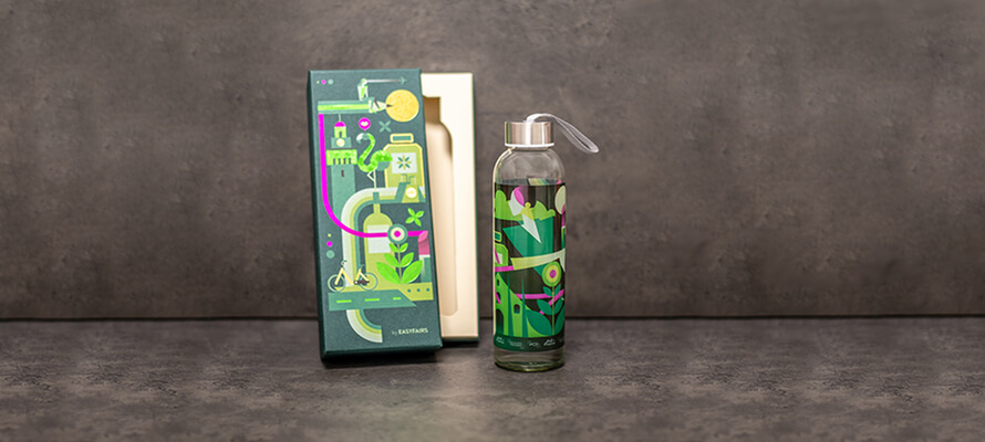 La borraccia in vetro creata da P&P Promotion per Packaging Première 2023