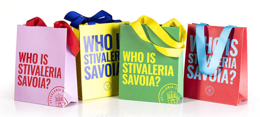 A completamento del progetto, Hello DTV ha pensato a una collezione di shopper “Who is Stivaleria Savoia?” in 5 colori diversi realizzate da Retail Pak.